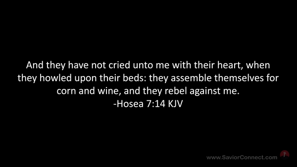 And they have not cried unto me with their heart, when they howled upon their beds: they assemble themselves for corn and wine, and they rebel against me. -Hosea 7:14 KJV
