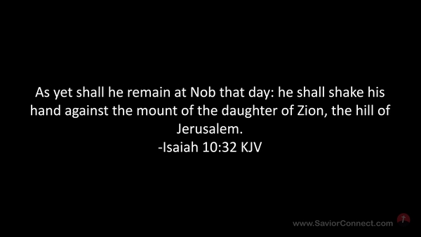 As yet shall he remain at Nob that day: he shall shake his hand against the mount of the daughter of Zion, the hill of Jerusalem. -Isaiah 10:32 KJV