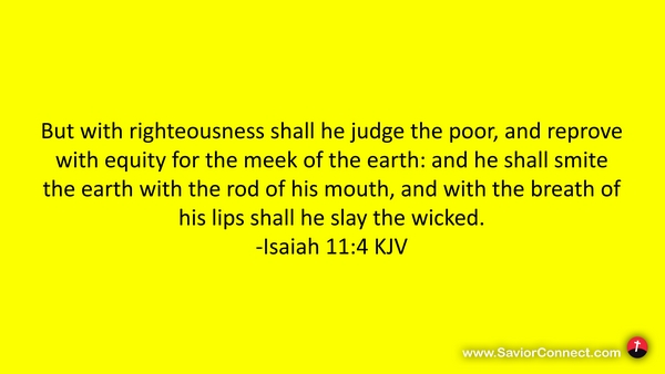 But with righteousness shall he judge the poor, and reprove with equity for the meek of the earth: and he shall smite the earth with the rod of his mouth, and with the breath of his lips shall he slay the wicked. -Isaiah 11:4 KJV