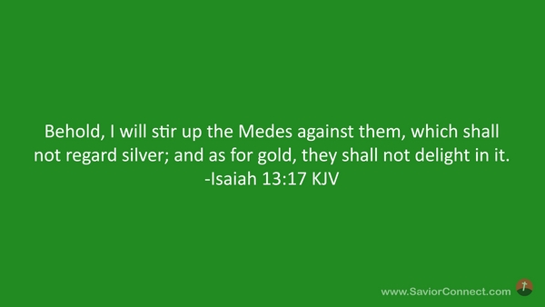 Behold, I will stir up the Medes against them, which shall not regard silver; and as for gold, they shall not delight in it. -Isaiah 13:17 KJV