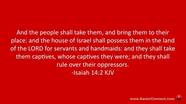 And the people shall take them, and bring them to their place: and the house of Israel shall possess them in the land of the LORD for servants and handmaids: and they shall take them captives, whose captives they were; and they shall rule over their oppressors. -Isaiah 14:2 KJV