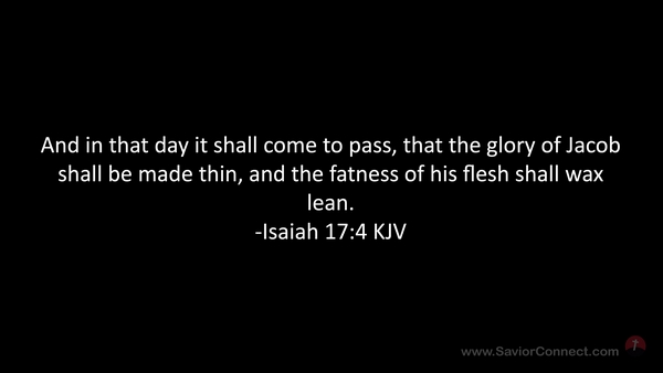 And in that day it shall come to pass, that the glory of Jacob shall be made thin, and the fatness of his flesh shall wax lean. -Isaiah 17:4 KJV