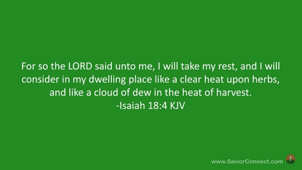 For so the LORD said unto me, I will take my rest, and I will consider in my dwelling place like a clear heat upon herbs, and like a cloud of dew in the heat of harvest. -Isaiah 18:4 KJV