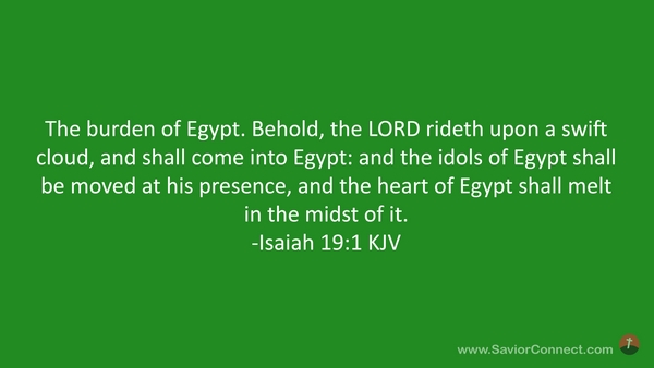 The burden of Egypt. Behold, the LORD rideth upon a swift cloud, and shall come into Egypt: and the idols of Egypt shall be moved at his presence, and the heart of Egypt shall melt in the midst of it. -Isaiah 19:1 KJV