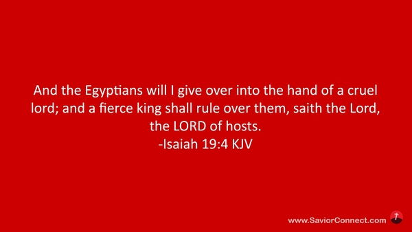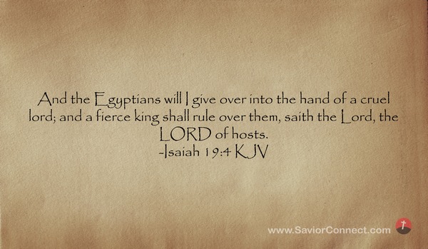 And the Egyptians will I give over into the hand of a cruel lord; and a fierce king shall rule over them, saith the Lord, the LORD of hosts. -Isaiah 19:4 KJV
