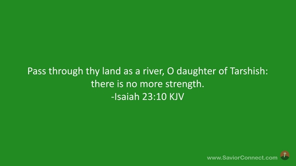 Pass through thy land as a river, O daughter of Tarshish: there is no more strength. -Isaiah 23:10 KJV