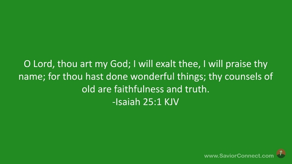 O Lord, thou art my God; I will exalt thee, I will praise thy name; for thou hast done wonderful things; thy counsels of old are faithfulness and truth. -Isaiah 25:1 KJV