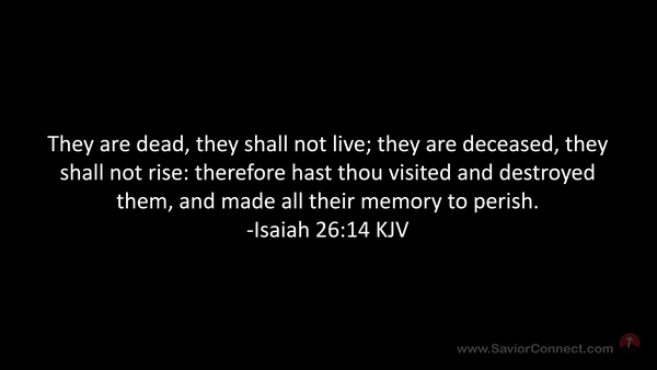 They are dead, they shall not live; they are deceased, they shall not rise: therefore hast thou visited and destroyed them, and made all their memory to perish. -Isaiah 26:14 KJV