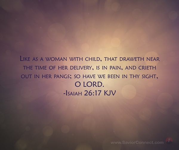 Like as a woman with child, that draweth near the time of her delivery, is in pain, and crieth out in her pangs; so have we been in thy sight, O LORD. -Isaiah 26:17 KJV