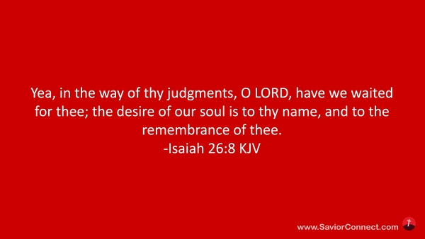 Yea, in the way of thy judgments, O LORD, have we waited for thee; the desire of our soul is to thy name, and to the remembrance of thee. -Isaiah 26:8 KJV