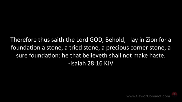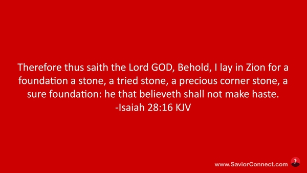 Therefore thus saith the Lord GOD, Behold, I lay in Zion for a foundation a stone, a tried stone, a precious corner stone, a sure foundation: he that believeth shall not make haste. -Isaiah 28:16 KJV