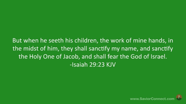 But when he seeth his children, the work of mine hands, in the midst of him, they shall sanctify my name, and sanctify the Holy One of Jacob, and shall fear the God of Israel. -Isaiah 29:23 KJV