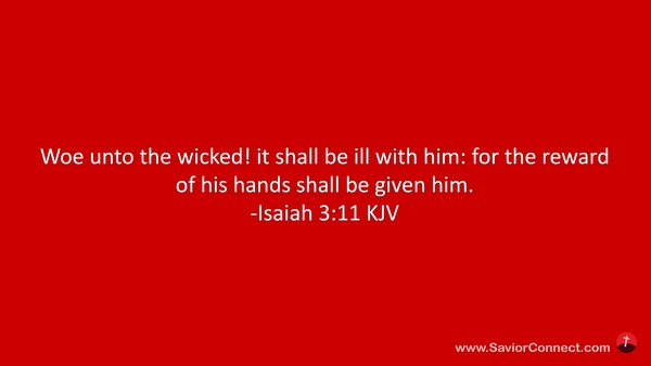 Woe unto the wicked! it shall be ill with him: for the reward of his hands shall be given him. -Isaiah 3:11 KJV