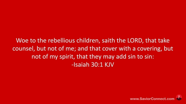 Woe to the rebellious children, saith the LORD, that take counsel, but not of me; and that cover with a covering, but not of my spirit, that they may add sin to sin: -Isaiah 30:1 KJV