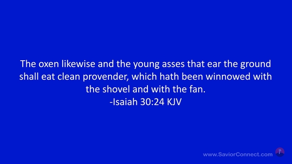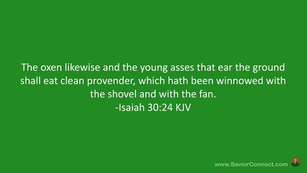 The oxen likewise and the young asses that ear the ground shall eat clean provender, which hath been winnowed with the shovel and with the fan. -Isaiah 30:24 KJV