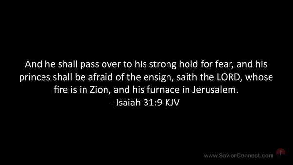 And he shall pass over to his strong hold for fear, and his princes shall be afraid of the ensign, saith the LORD, whose fire is in Zion, and his furnace in Jerusalem. -Isaiah 31:9 KJV