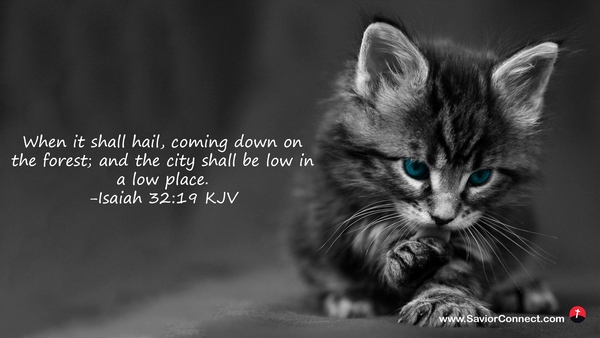 When it shall hail, coming down on the forest; and the city shall be low in a low place. -Isaiah 32:19 KJV