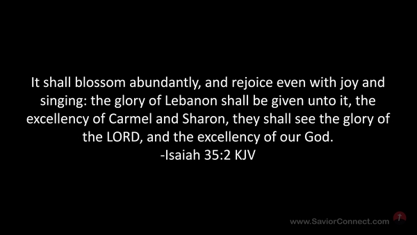 It shall blossom abundantly, and rejoice even with joy and singing: the glory of Lebanon shall be given unto it, the excellency of Carmel and Sharon, they shall see the glory of the LORD, and the excellency of our God. -Isaiah 35:2 KJV