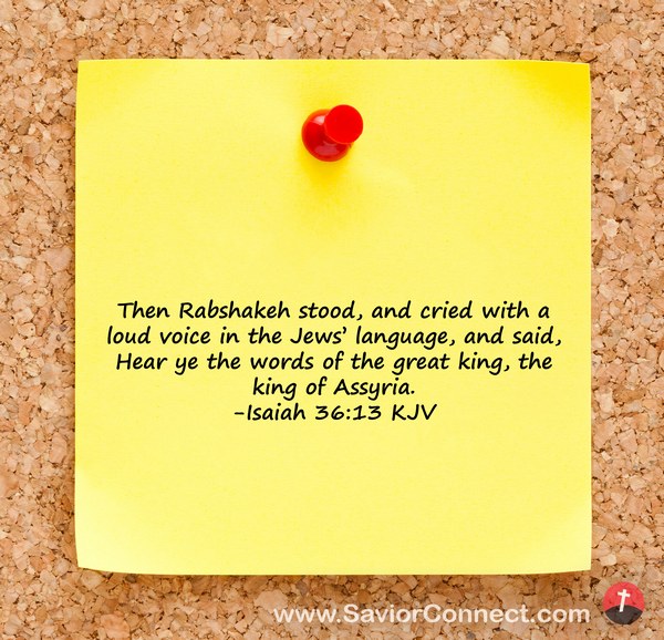 Then Rabshakeh stood, and cried with a loud voice in the Jews' language, and said, Hear ye the words of the great king, the king of Assyria. -Isaiah 36:13 KJV