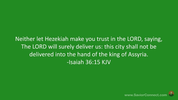 Neither let Hezekiah make you trust in the LORD, saying, The LORD will surely deliver us: this city shall not be delivered into the hand of the king of Assyria. -Isaiah 36:15 KJV