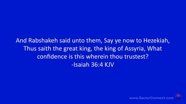 And Rabshakeh said unto them, Say ye now to Hezekiah, Thus saith the great king, the king of Assyria, What confidence is this wherein thou trustest? -Isaiah 36:4 KJV