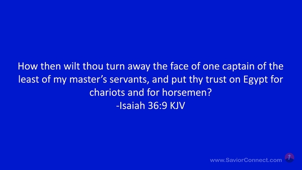 How then wilt thou turn away the face of one captain of the least of my master's servants, and put thy trust on Egypt for chariots and for horsemen? -Isaiah 36:9 KJV