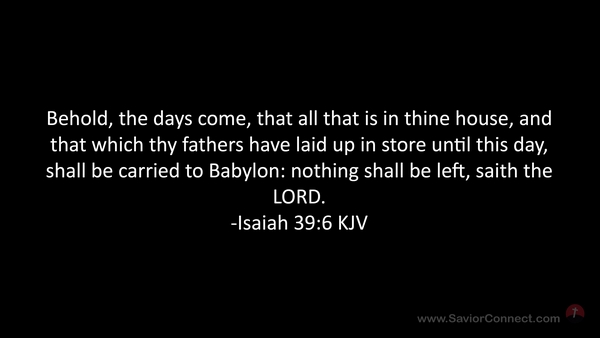 Behold, the days come, that all that is in thine house, and that which thy fathers have laid up in store until this day, shall be carried to Babylon: nothing shall be left, saith the LORD. -Isaiah 39:6 KJV