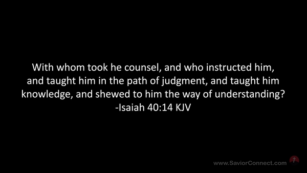 With whom took he counsel, and who instructed him, and taught him in the path of judgment, and taught him knowledge, and shewed to him the way of understanding? -Isaiah 40:14 KJV