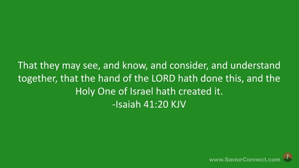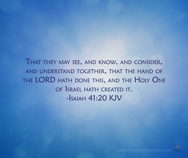 That they may see, and know, and consider, and understand together, that the hand of the LORD hath done this, and the Holy One of Israel hath created it. -Isaiah 41:20 KJV