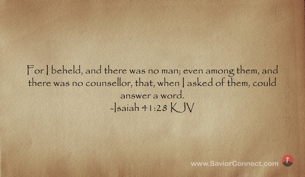 For I beheld, and there was no man; even among them, and there was no counsellor, that, when I asked of them, could answer a word. -Isaiah 41:28 KJV