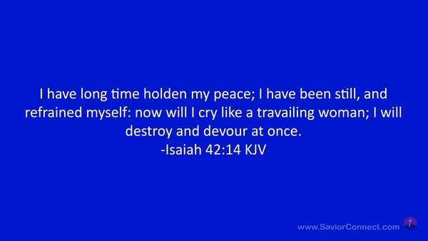 I have long time holden my peace; I have been still, and refrained myself: now will I cry like a travailing woman; I will destroy and devour at once. -Isaiah 42:14 KJV