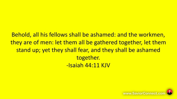 Behold, all his fellows shall be ashamed: and the workmen, they are of men: let them all be gathered together, let them stand up; yet they shall fear, and they shall be ashamed together. -Isaiah 44:11 KJV