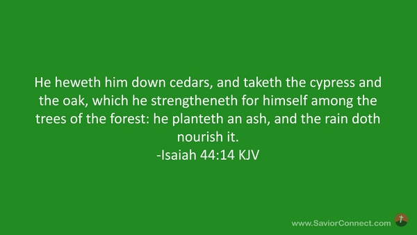 He heweth him down cedars, and taketh the cypress and the oak, which he strengtheneth for himself among the trees of the forest: he planteth an ash, and the rain doth nourish it. -Isaiah 44:14 KJV