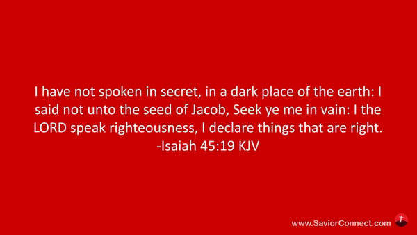 I have not spoken in secret, in a dark place of the earth: I said not unto the seed of Jacob, Seek ye me in vain: I the LORD speak righteousness, I declare things that are right. -Isaiah 45:19 KJV