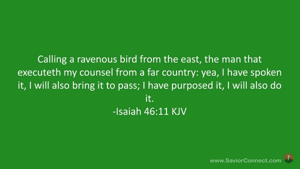 Calling a ravenous bird from the east, the man that executeth my counsel from a far country: yea, I have spoken it, I will also bring it to pass; I have purposed it, I will also do it. -Isaiah 46:11 KJV