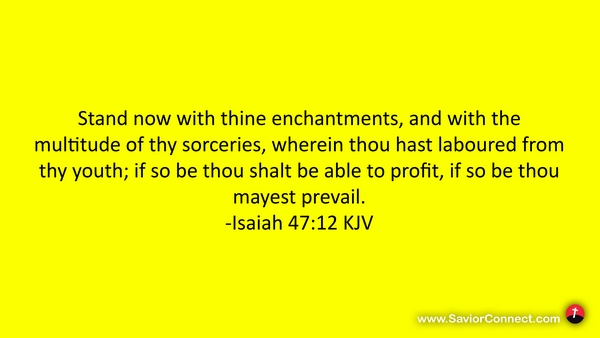 Stand now with thine enchantments, and with the multitude of thy sorceries, wherein thou hast laboured from thy youth; if so be thou shalt be able to profit, if so be thou mayest prevail. -Isaiah 47:12 KJV