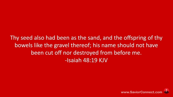 Thy seed also had been as the sand, and the offspring of thy bowels like the gravel thereof; his name should not have been cut off nor destroyed from before me. -Isaiah 48:19 KJV