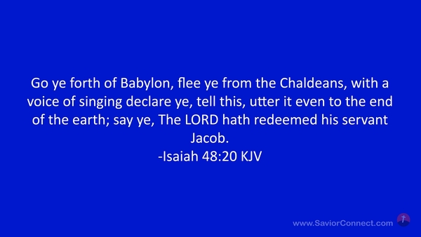 Go ye forth of Babylon, flee ye from the Chaldeans, with a voice of singing declare ye, tell this, utter it even to the end of the earth; say ye, The LORD hath redeemed his servant Jacob. -Isaiah 48:20 KJV