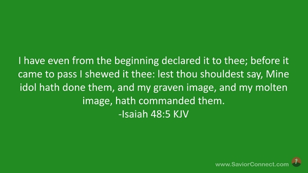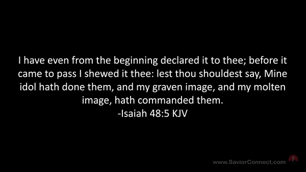 I have even from the beginning declared it to thee; before it came to pass I shewed it thee: lest thou shouldest say, Mine idol hath done them, and my graven image, and my molten image, hath commanded them. -Isaiah 48:5 KJV