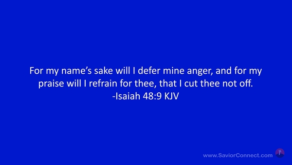 For my name's sake will I defer mine anger, and for my praise will I refrain for thee, that I cut thee not off. -Isaiah 48:9 KJV