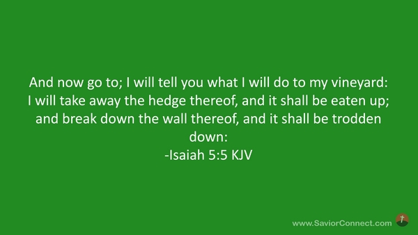 And now go to; I will tell you what I will do to my vineyard: I will take away the hedge thereof, and it shall be eaten up; and break down the wall thereof, and it shall be trodden down: -Isaiah 5:5 KJV