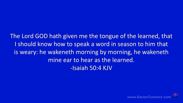 The Lord GOD hath given me the tongue of the learned, that I should know how to speak a word in season to him that is weary: he wakeneth morning by morning, he wakeneth mine ear to hear as the learned. -Isaiah 50:4 KJV