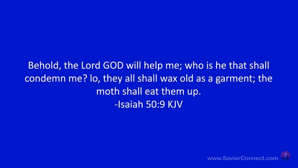 Behold, the Lord GOD will help me; who is he that shall condemn me? lo, they all shall wax old as a garment; the moth shall eat them up. -Isaiah 50:9 KJV
