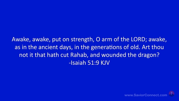Awake, awake, put on strength, O arm of the LORD; awake, as in the ancient days, in the generations of old. Art thou not it that hath cut Rahab, and wounded the dragon? -Isaiah 51:9 KJV