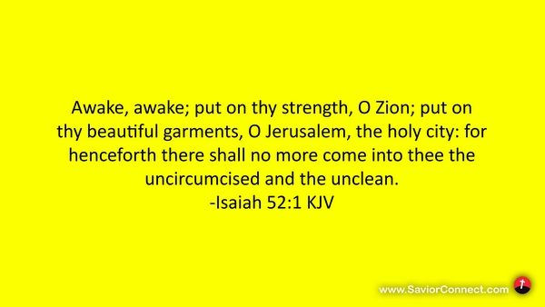 Awake, awake; put on thy strength, O Zion; put on thy beautiful garments, O Jerusalem, the holy city: for henceforth there shall no more come into thee the uncircumcised and the unclean. -Isaiah 52:1 KJV