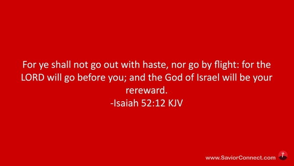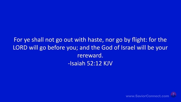 For ye shall not go out with haste, nor go by flight: for the LORD will go before you; and the God of Israel will be your rereward. -Isaiah 52:12 KJV