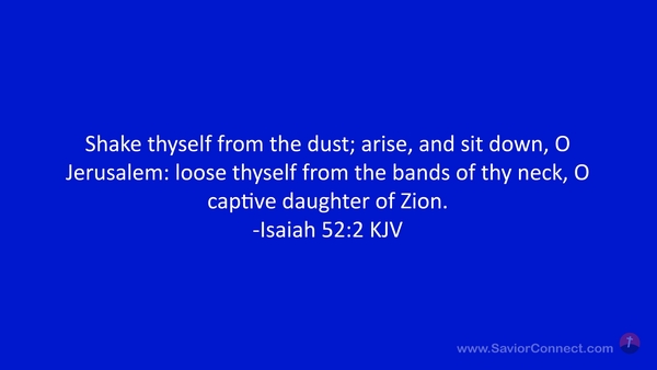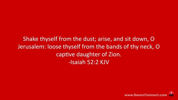 Shake thyself from the dust; arise, and sit down, O Jerusalem: loose thyself from the bands of thy neck, O captive daughter of Zion. -Isaiah 52:2 KJV
