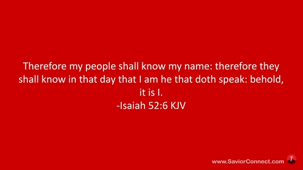 Therefore my people shall know my name: therefore they shall know in that day that I am he that doth speak: behold, it is I. -Isaiah 52:6 KJV
