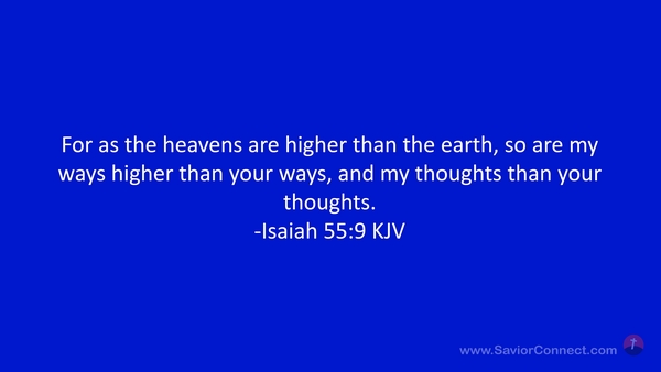 For as the heavens are higher than the earth, so are my ways higher than your ways, and my thoughts than your thoughts. -Isaiah 55:9 KJV