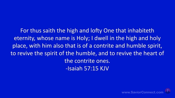 For thus saith the high and lofty One that inhabiteth eternity, whose name is Holy; I dwell in the high and holy place, with him also that is of a contrite and humble spirit, to revive the spirit of the humble, and to revive the heart of the contrite ones. -Isaiah 57:15 KJV